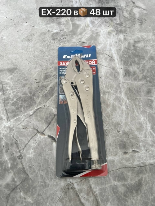 №ЕХ-220 Клещи зажимные ЕХ-220 Клещи зажимные с фиксатором используются при выполнении сварочных и слесарно-монтажных работ. Применяется для удержания и временной фиксации разнообразных по форме предметов. Размер зева регулируется с помощью винта в ручке зажима. Вогнутая зазубренная поверхность губок обеспечивает работу с плоскими и округлыми деталями. Материал: инструментальная сталь, никелированное покрытие, твердость захватных губок 55HRC. Фиксация детали производится сжатием ручек. Материал - высокопрочная катаная сталь.